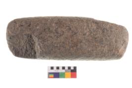 | Description / विवरण | Specimen of an oval shaped saddle quern. It has battered surface along with curved ridges. |