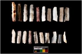 | Description / विवरण | There are n-20 blades with retouched sides. Out of them 5 are made up of Chalcedony, 11 are made up of Chert and 4 are made up of Agate. Some of them are blunted back blades, crescent and truncated blades. |