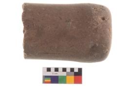 | Description / विवरण | Specimen of an oval shaped saddle quern. It has battered surface along with curved ridges. |