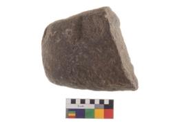 | Description / विवरण | Specimen of an oval shaped saddle quern. It has battered surface along with curved ridges. |