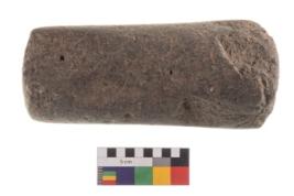 | Description / विवरण | Specimen of an oval shaped saddle quern. It has battered surface along with curved ridges. |