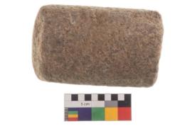 | Description / विवरण | Specimen of an oval shaped saddle quern. It has battered surface along with curved ridges. |