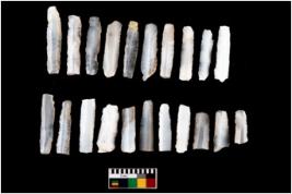 | Description / विवरण | There are n-20 blades with retouched sides. Out of them 18 are made up of Chalcedony and 2 are made up of Agate. Some of them are blunted back blades, crescent and truncated blades. |