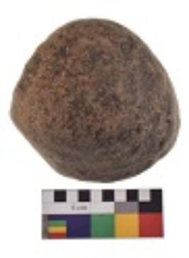 | Description / विवरण | Specimen of a hammerstone with battered periphery along with the circumference. |