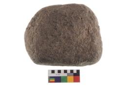 | Description / विवरण | Specimen of an oval shaped saddle quern. It has battered surface along with curved ridges. |