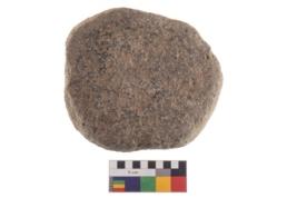 | Description / विवरण | Specimen of an oval shaped saddle quern. It has battered surface along with curved ridges. |