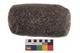 | Description / विवरण | Specimen of an oval shaped saddle quern. It has battered surface along with curved ridges. |
