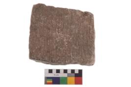 | Description / विवरण | Specimen of a rectangular shaped polisher. It has battered surface along with curved ridges. |