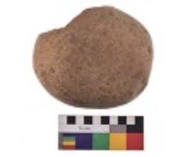 | Description / विवरण | Specimen of a hammerstone with battered periphery along with the circumference. |