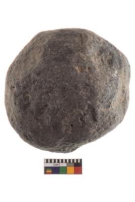 | Description / विवरण | Specimen of an round shaped smasher. It has battered surface along with curved ridges. |