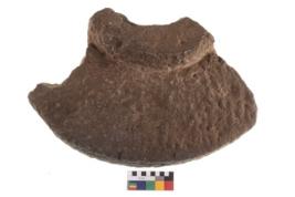 | Description / विवरण | Specimen of a round shaped grinding stone. It has battered surface along with curved ridges. |