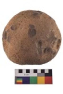 | Description / विवरण | Specimen of a hammerstone with battered periphery along with the circumference. |