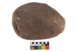 | Description / विवरण | Specimen of an oval shaped saddle quern. It has battered surface along with curved ridges. |