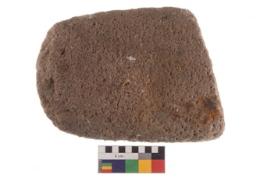 | Description / विवरण | Specimen of an oval shaped saddle quern. It has battered surface along with curved ridges. |