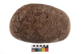 | Description / विवरण | Specimen of an oval shaped saddle quern. It has battered surface along with curved ridges. |