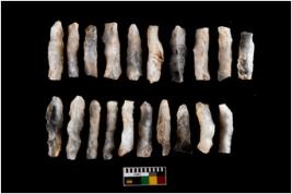 | Description / विवरण | There are n-20 blades with retouched sides. Out of them 18 are made up of Chalcedony and 2 are made up of Agate. Some of them are blunted back blades, crescent and truncated blades. |