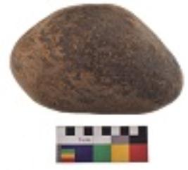 | Description / विवरण | Specimen of a hammerstone with battered periphery along with the circumference. |