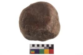 | Description / विवरण | Specimen of an round shaped saddle quern. It has battered surface along with curved ridges. |