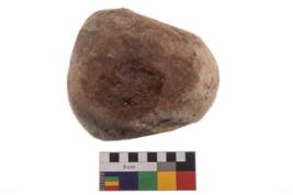 | Description / विवरण | Specimen of an uneven shaped saddle quern. It has battered surface along with curved ridges. |
