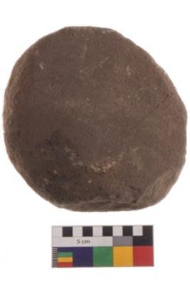 | Description / विवरण | Specimen of an oval shaped saddle quern. It has battered surface along with curved ridges. |