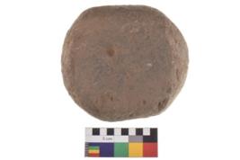 | Description / विवरण | Specimen of a sling ball with rough surface. |