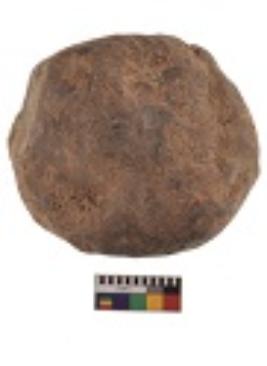 | Description / विवरण | Specimen of a hammerstone with battered periphery along with the circumference. |