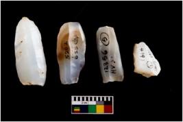 | Description / विवरण | Specimen of a fluted cores with few broad fluted marks indicating the detached blades from it. Some of them are tapering at one end. |