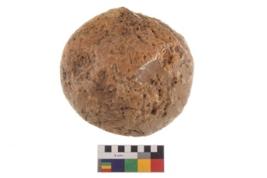 | Description / विवरण | Specimen of an round shaped smasher. It has battered surface along with curved ridges. |