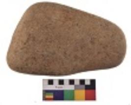 | Description / विवरण | Specimen of a hammerstone with battered periphery along with the circumference. |