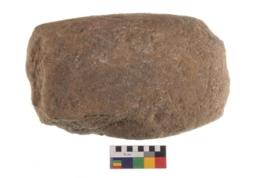 | Description / विवरण | Specimen of an oval shaped saddle quern. It has battered surface along with curved ridges. |