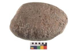 | Description / विवरण | Specimen of an oval shaped saddle quern. It has battered surface along with curved ridges. |