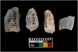 | Description / विवरण | Specimen of a fluted cores with few broad fluted marks indicating the detached blades from it. Some of them are tapering at one end. |