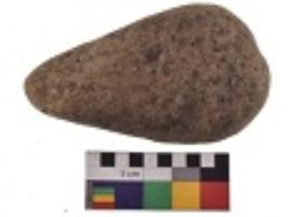 | Description / विवरण | Specimen of a hammerstone with battered periphery along with the circumference. |
