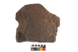 | Description / विवरण | Specimen of a uneven shaped grinding stone. It has battered surface along with curved ridges. |