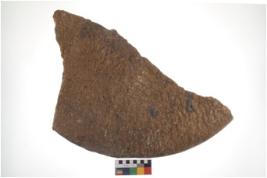 | Description / विवरण | Specimen of a round shaped grinding stone. It has battered surface along with curved ridges. |