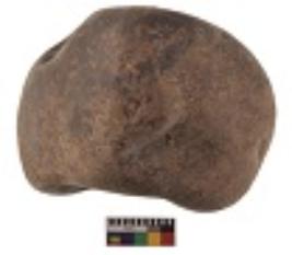 | Description / विवरण | Specimen of a hammerstone with battered periphery along with the circumference. |