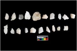 | Description / विवरण | Specimen of cores with fewfluted marks indicating the detached blades from it. Some of them are tapering at one end. Most of them have sharp edges. |