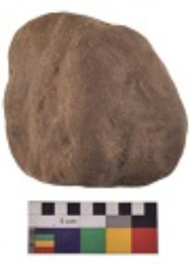| Description / विवरण | Specimen of a hammerstone with battered periphery along with the circumference. |