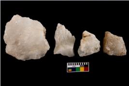 | Description / विवरण | Specimen of a cores with several broad fluted marks. Some of them are tapering at one end. |