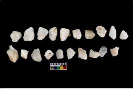 | Description / विवरण | Specimen of cores with fewfluted marks indicating the detached blades from it. Some of them are tapering at one end. Most of them have sharp edges. |