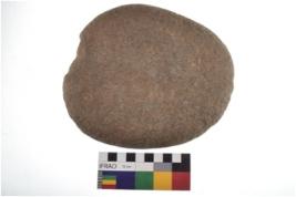 | Description / विवरण | Specimen of a sling ball with rough surface. |