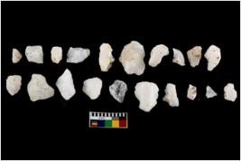 | Description / विवरण | Specimen of cores with fewfluted marks indicating the detached blades from it. Some of them are tapering at one end. Most of them have sharp edges. |