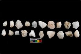 | Description / विवरण | Specimen of cores with fewfluted marks indicating the detached blades from it. Some of them are tapering at one end. Most of them have sharp edges. |