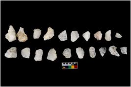 | Description / विवरण | Specimen of cores with fewfluted marks indicating the detached blades from it. Some of them are tapering at one end. Most of them have sharp edges. |