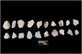| Description / विवरण | Specimen of cores with fewfluted marks indicating the detached blades from it. Some of them are tapering at one end. Most of them have sharp edges. |