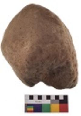 | Description / विवरण | Specimen of a hammerstone with battered periphery along with the circumference. |