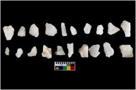 | Description / विवरण | Specimen of cores with fewfluted marks indicating the detached blades from it. Some of them are tapering at one end. Most of them have sharp edges. |