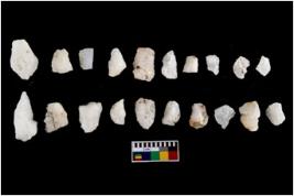 | Description / विवरण | Specimen of cores with fewfluted marks indicating the detached blades from it. Some of them are tapering at one end. Most of them have sharp edges. |