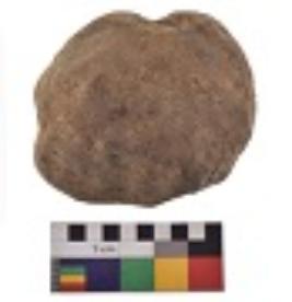 | Description / विवरण | Specimen of a hammerstone with battered periphery along with the circumference. |