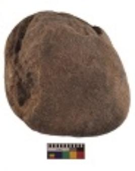 | Description / विवरण | Specimen of a hammerstone with battered periphery along with the circumference. |